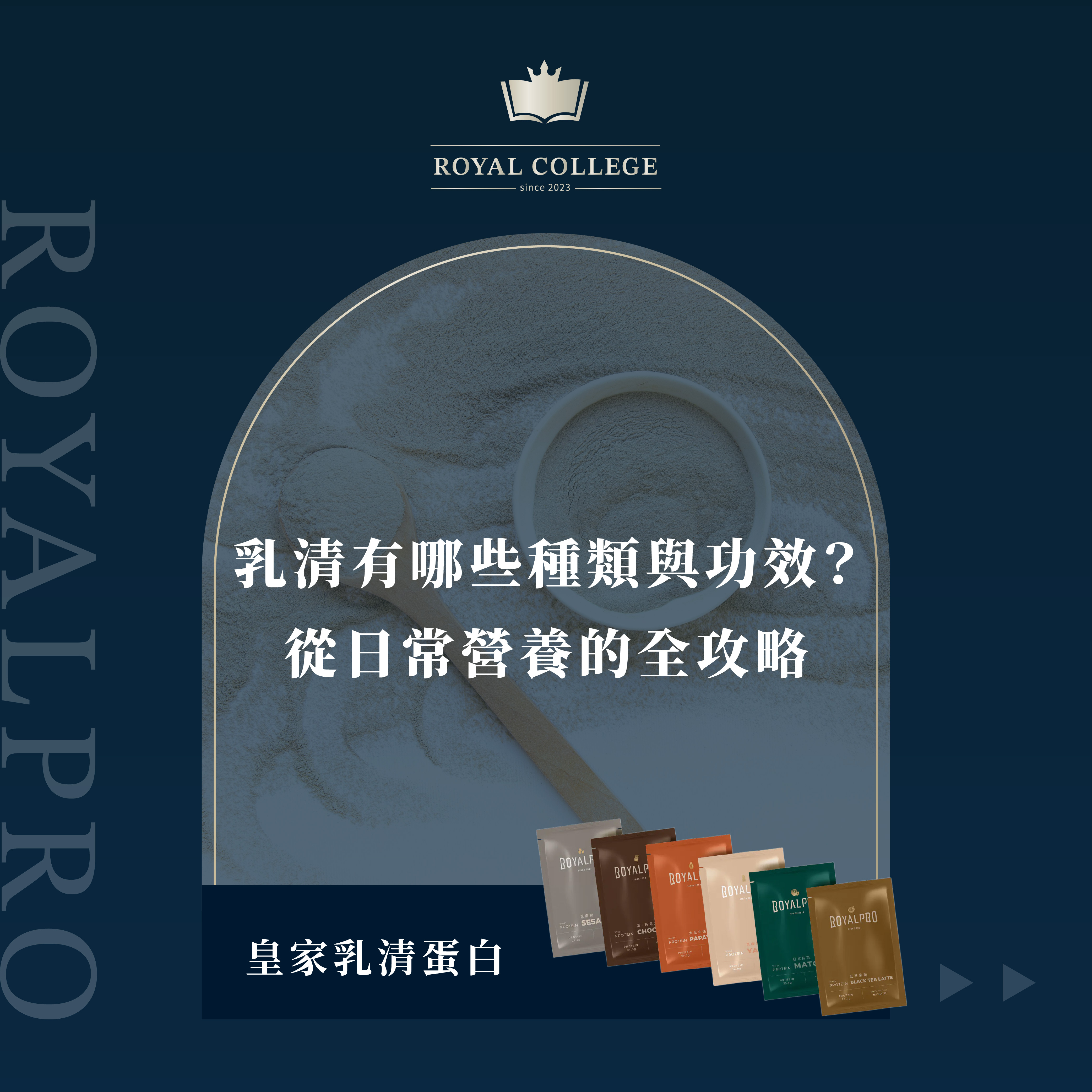 乳清蛋白(Whey Protein)是許多健身者、運動員甚至日常營養補充中的首選,相信很多人也都知道乳清蛋白有不同的種類,選擇合適的乳清蛋白就需要了解它們的差異、適用族群、食用時機,以及可能的副作用。以下,我們將深入探討這些關鍵知識。 【乳清蛋白的分類與製程差異】乳清蛋白可分為 濃縮乳清蛋白(Whey Protein Concentrate, WPC)、分離乳清蛋白(Whey Protein Isolate, WPI) 和 水解乳清蛋白(Hydrolyzed Whey Protein, HWP)。它們的區別在於製程的不同,導致蛋白質濃度、吸收速度以及乳糖含量的差異。濃縮乳清蛋白 (WPC) 製程:經過初步的濾過製程,保留較多天然成分。 特色:蛋白質含量約 70-80%,含有少量的乳糖和脂肪。 適用:適合一般健身者或需要基礎蛋白補充的人,價格較實惠。分離乳清蛋白 (WPI) 製程:經過更多次的過濾,去除了大部分乳糖和脂肪。 特色:蛋白質含量達 90% 以上,幾乎不含乳糖。 適用:適合乳糖不耐症者或對脂肪攝取有要求的人,或希望快速補充高純度蛋白質的運動員。水解乳清蛋白 (HWP) 製程:經酶解處理,將蛋白質預分解為短鏈肽,利於吸收。 特色:吸收速度最快,幾乎不會引發胃腸不適。 適用:適合胃腸敏感者、需要快速吸收蛋白的運動後補充,或對恢復需求高的專業運動員。【各乳清蛋白的適用族群】濃縮乳清蛋白 (WPC):適合入門健身者、學生或預算有限但需要蛋白補充的族群。分離乳清蛋白 (WPI):適合乳糖不耐症者、需要快速吸收高純度蛋白的人,例如高強度訓練者。水解乳清蛋白 (HWP):適合恢復需求高的運動員、長期高強度訓練者或消化系統較敏感的人群。【乳清蛋白的食用方式與時機】食用方式:將乳清蛋白粉與水、牛奶或植物奶混合攪拌,製成蛋白飲品,亦可加入燕麥、果昔或烘焙食譜中。食用時機:早晨空腹:補充經過一夜消耗的營養,提供能量開始一天。運動後30分鐘內:增強肌肉恢復與合成,特別是高吸收性的 WPI 或 HWP。睡前:補充蛋白質,延緩夜間肌肉分解,可選濃縮乳清蛋白。【乳清蛋白的注意事項】雖然乳清蛋白對大多數人是安全的,但部分人可能會出現以下問題:乳糖不耐症者:對濃縮乳清蛋白中的乳糖不耐,可能導致腹脹或不適(可選用 WPI 或 HWP)。過量攝取:可能增加腎臟負擔,建議每日蛋白質攝取總量控制在體重的 1.2-2.0 公斤/克之間,視個人活動量而定。腸胃問題:少部分人對人工添加物不耐,建議選擇乳源更純淨、成分更天然的乳清蛋白。 乳清蛋白不僅是運動補充的利器,也是日常健康的一部分。無論是想達成健美目標,或只是提升日常活力,選擇適合你的乳清蛋白,並善用正確的食用時機,將幫助你開啟更健康的生活!在ROYALPRO看來乳清不只是一杯功能性的補給,是一段屬於你自己的「小儀式」ROYALPRO的全分離乳清蛋白兼具功效與美味。你可以依心情選擇喜歡的口味:👉 紅茶拿鐵 👉 日式抹茶 → 日常耐喝:像是在家喝下午茶👉 乳酸多多 👉 木瓜牛奶 → 清爽輕盈:忙碌時隨手一杯也很讚👉 厚.巧克力 👉 芝麻糊 → 濃郁系列:早餐或運動後的滿足感來源讓ROYALPRO的全分離乳清蛋白成為陪你照顧身體的那個人~