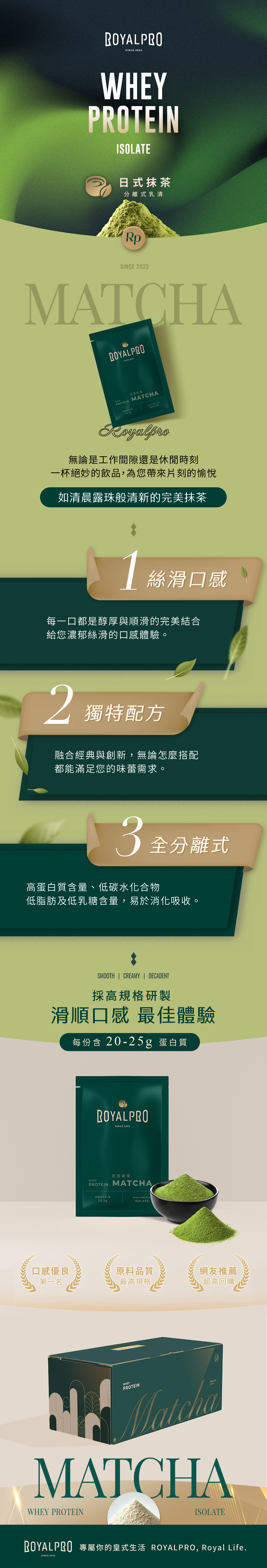 成 分:分離乳清蛋⽩(分離乳清蛋⽩、卵磷脂)、抹茶粉、奶精粉[葡萄糖漿、完全氫化植物油(椰子油)、乾酪素鈉、磷酸氫二鉀、多磷酸鈉、脂肪酸甘油酯、檸檬酸甘油酯、二氧化矽、β-胡蘿蔔素]、抹茶粉[綠茶粉、食用黃色四號、食用藍色一號]、玉米糖膠、鹽、香料、二氧化矽、醋磺內酯鉀(甜味劑)
